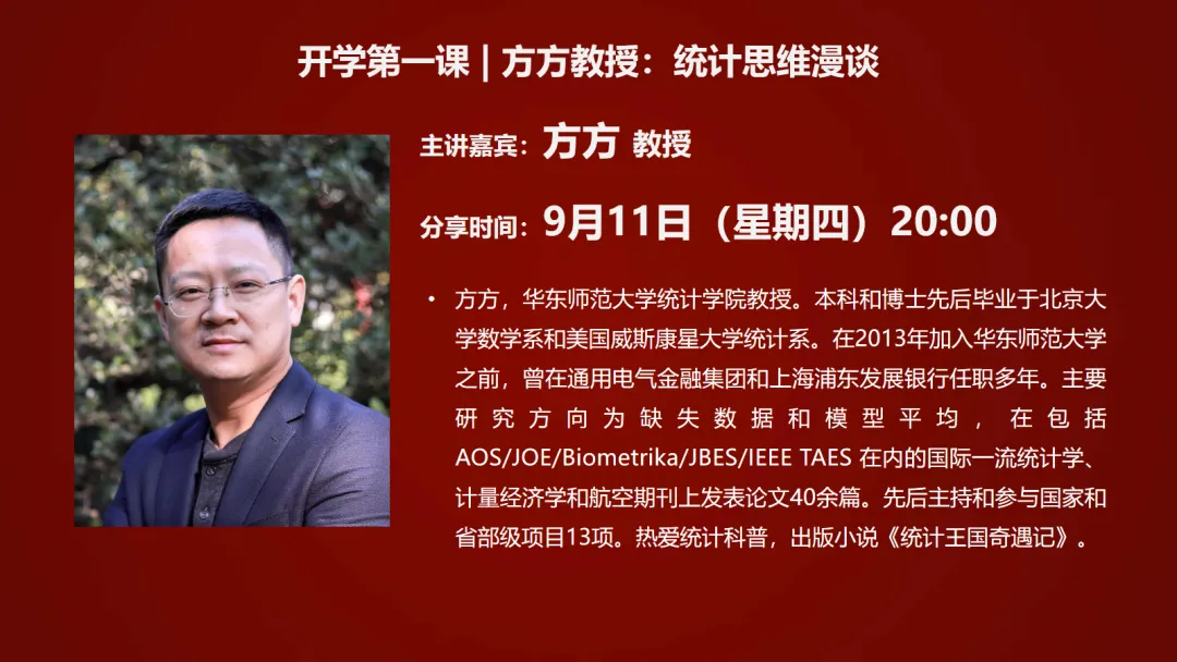 华东师范大学方方教授:统计思维漫谈(2025开学第一课)