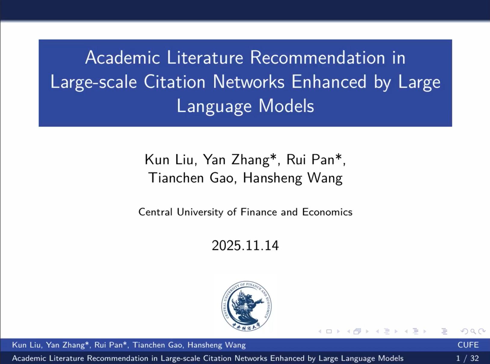 中央财经大学在读博士刘堃:基于大型语言模型增强的大规模引文网络学术文献推荐